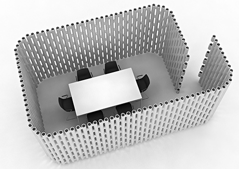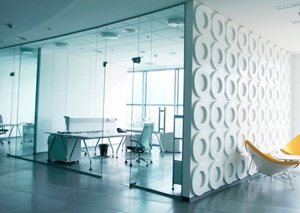Стеклянные перегородки. Оптимальные акустические условия для проведения переговоров достигается за счет остекления (стеклянные перегородки), что позволяет изолировать помещение от лишних звуков как со стороны улицы, так и из соседних комнат. Следуя последним тенденциям в дизайне интерьера, стекло способно удовлетворить растущий интерес к рынку. Подобное решение является идеальным, так как выполняется не только защитная функция, а также эстетическая — стекло служит уникальным украшением всей комнаты. Оригинальная стена с графикой на стекле, может дать неортодоксальный внешний вид любой комнате.