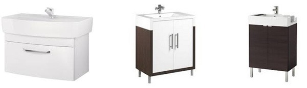 Конфигурация тумбы подбирается в зависимости от параметров ванной комнаты. Дизайнеры говорят, что угловая мебель способна визуально расширить пространство. Установленная в углу тумба займет меньше места. В узкой комнате будет гармонично смотреться узкая тумба с раковиной необычной формы. Существует еще один дизайнерский прием для визуального увеличения комнатного пространства: использование подвесной мебели без ножек. Чем больше пространства пола видно глазу, тем больше кажется ванная комната. К тому же, подобное расположение мебели существенно облегчает и ускоряет процесс уборки в комнате и позволяет контролировать появление воды. Также визуально расширить пространство поможет использование светлых оттенков и горизонтальных полос. Например, гармонично смотрится тумба для раковины с оформлением дверей и ящичков разными цветами.