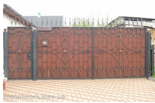 Традиционные распашные ворота с двумя створками остаются самым демократическим вариантом, легким в установке и неприхотливым в эксплуатации. Реже встречаются одностворчатые варианты. Для удобства эксплуатации подобные ворота могут оснащаться электрозамком или блоком автоматического управления. Распашные ворота (см. тут) устойчивы к механическим воздействиям, при минимальном уходе (своевременная покраска, смазка петель) долговечны и надежны. Требуют дополнительного места за пределами гаража, во время снежных заносов водителю будет достаточно сложно открыть створки.